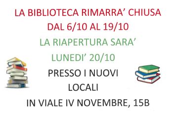 Si comunica che, a causa dello spostamento di sede della biblioteca comunale, gli orari di apertura subiranno la seguente variazione.