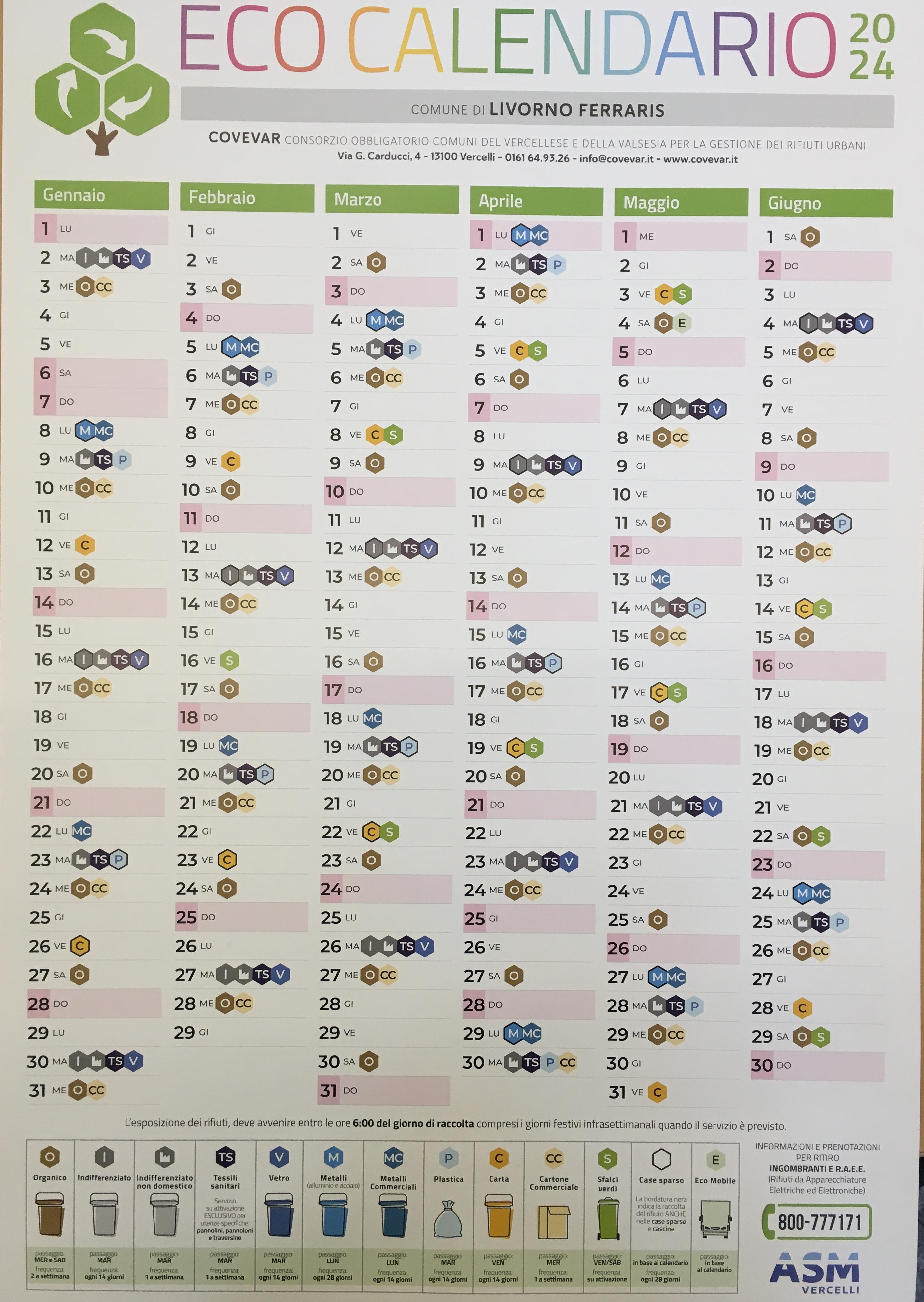 Calendario raccolta differenziata 2024