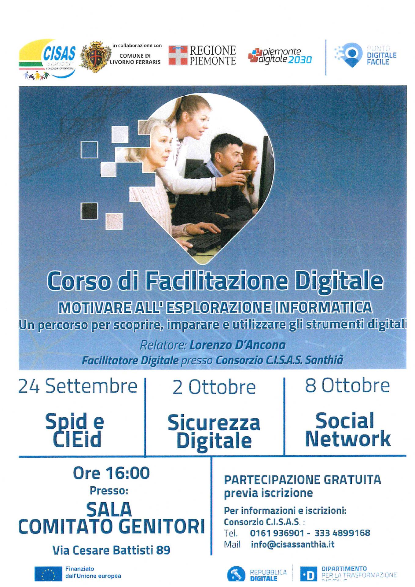 In programma 3 lezioni per scoprire, imparare e utilizzare gli strumenti digitali, finanziate dalla regione Piemonte e promosse dal consorzio Cisas nei seguenti giorni:
