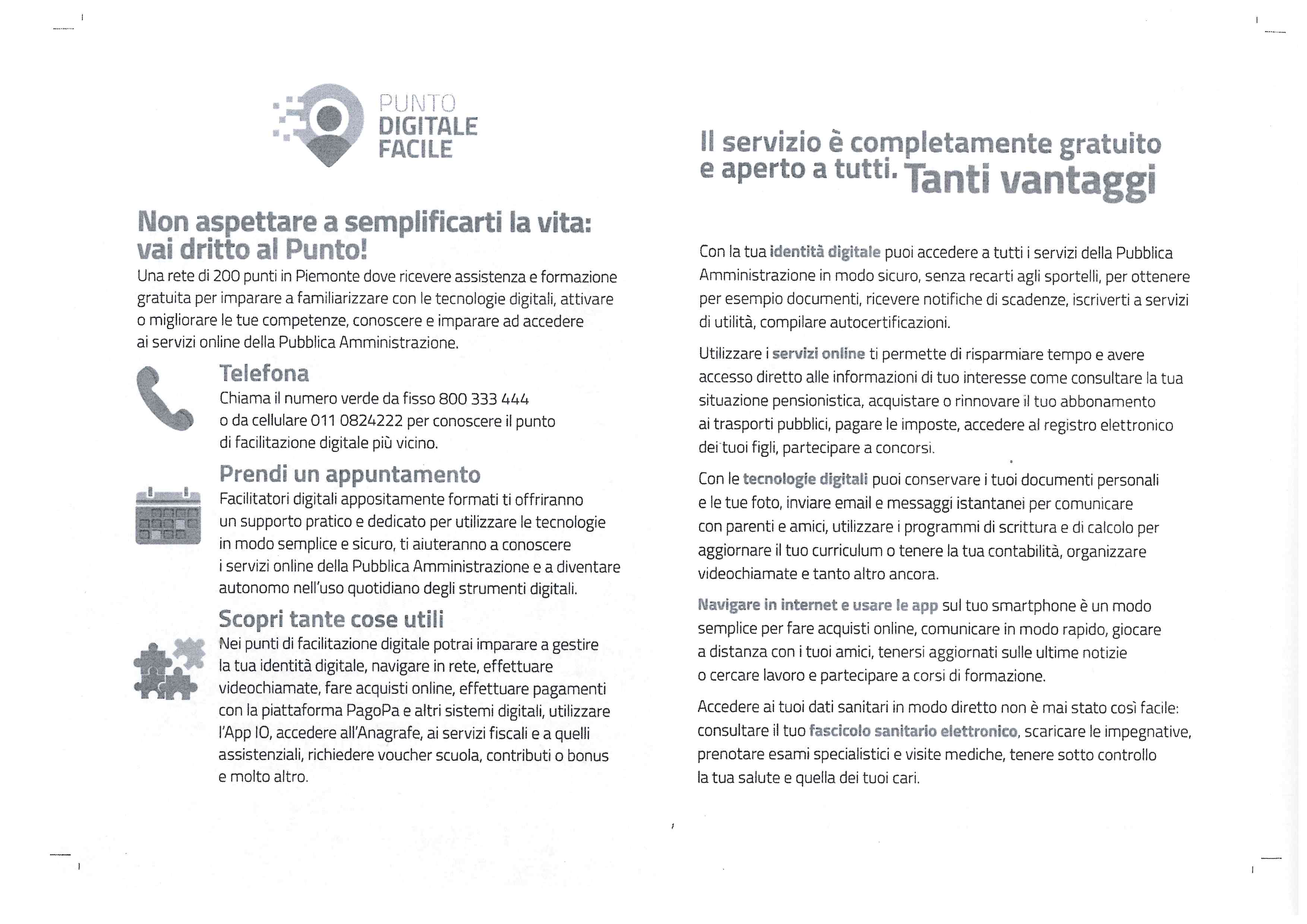 Apertura nuovo sportello di facilitazione digitale presso la sede comunale in Via Martiri della Libertà n.100 al primo piano.