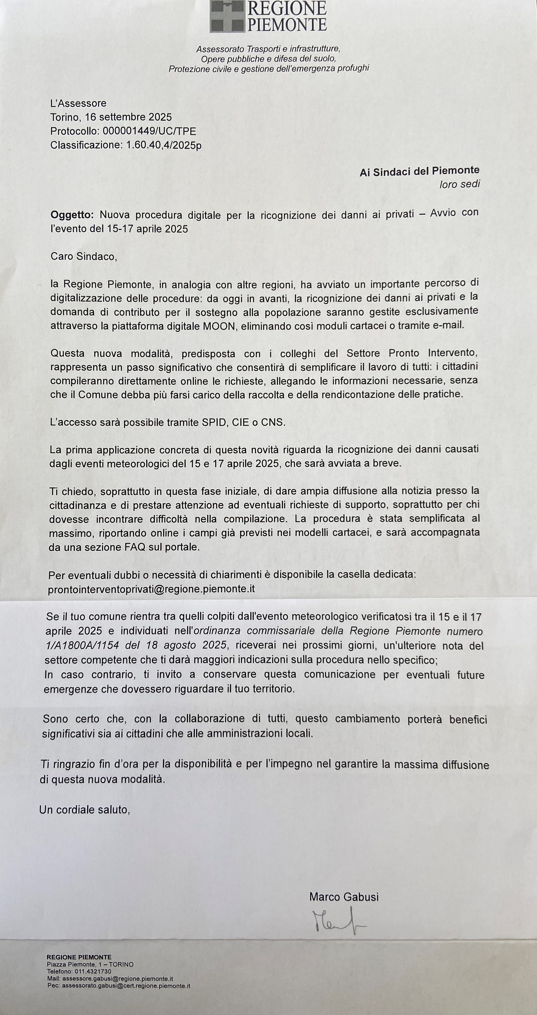 Nuova Piattaforma MOON della Regione Piemonte per la ricognizione dei danni ai privati e presentazione della domanda di contributo.