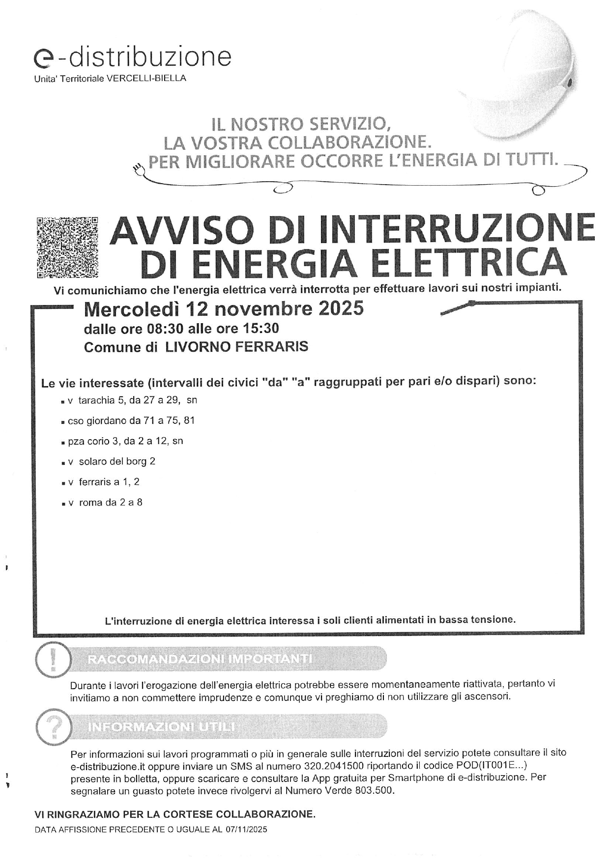 Dalle ore 8,30 alle 15,30 interruzione su Via Tarachia Giordano, Corso Leone Giordano, Piazza Corio, Via Solaro del Borgo, Via Adamo Ferraris, Via Roma.