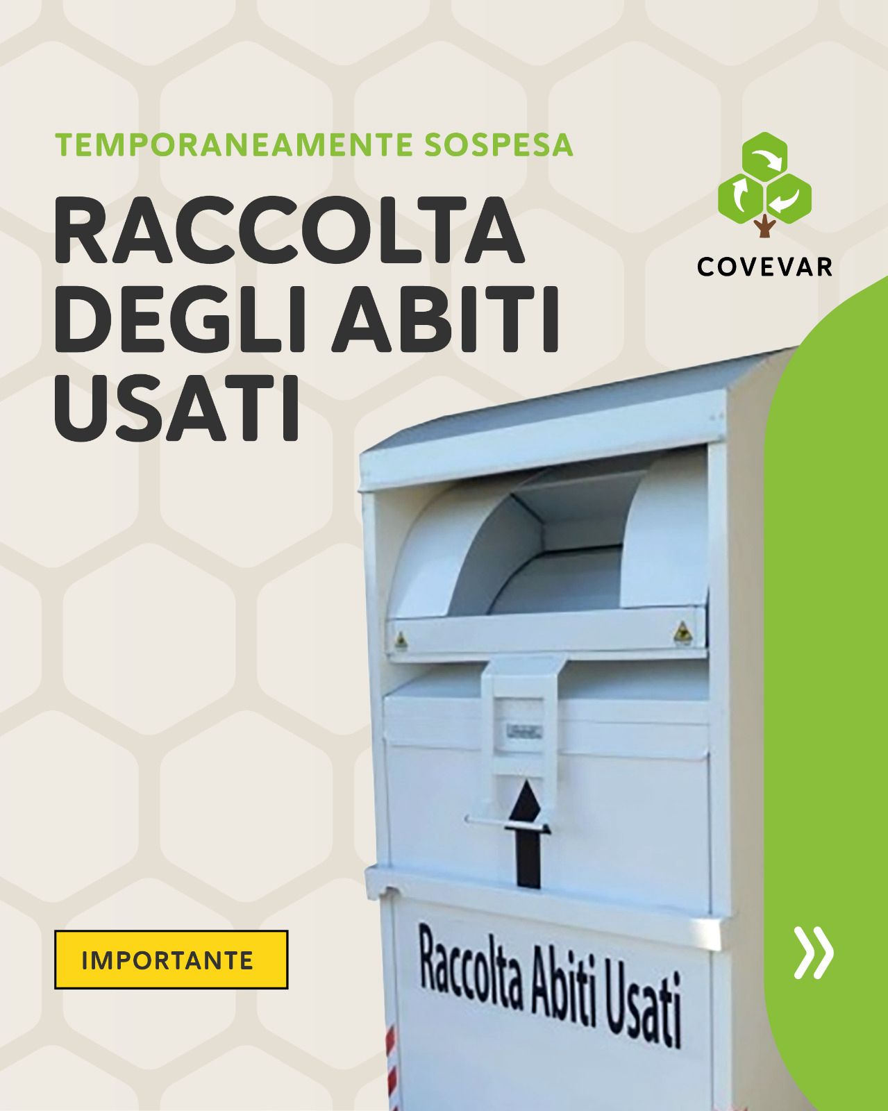 I contenitori stradali per abiti e indumenti sono stati rimossi. Si invitano tutti i cittadini a NON ABBANDONARE i propri abiti usati sul territorio. Gli abiti usati potranno essere conferiti presso i centri di raccolta consortili indicati.