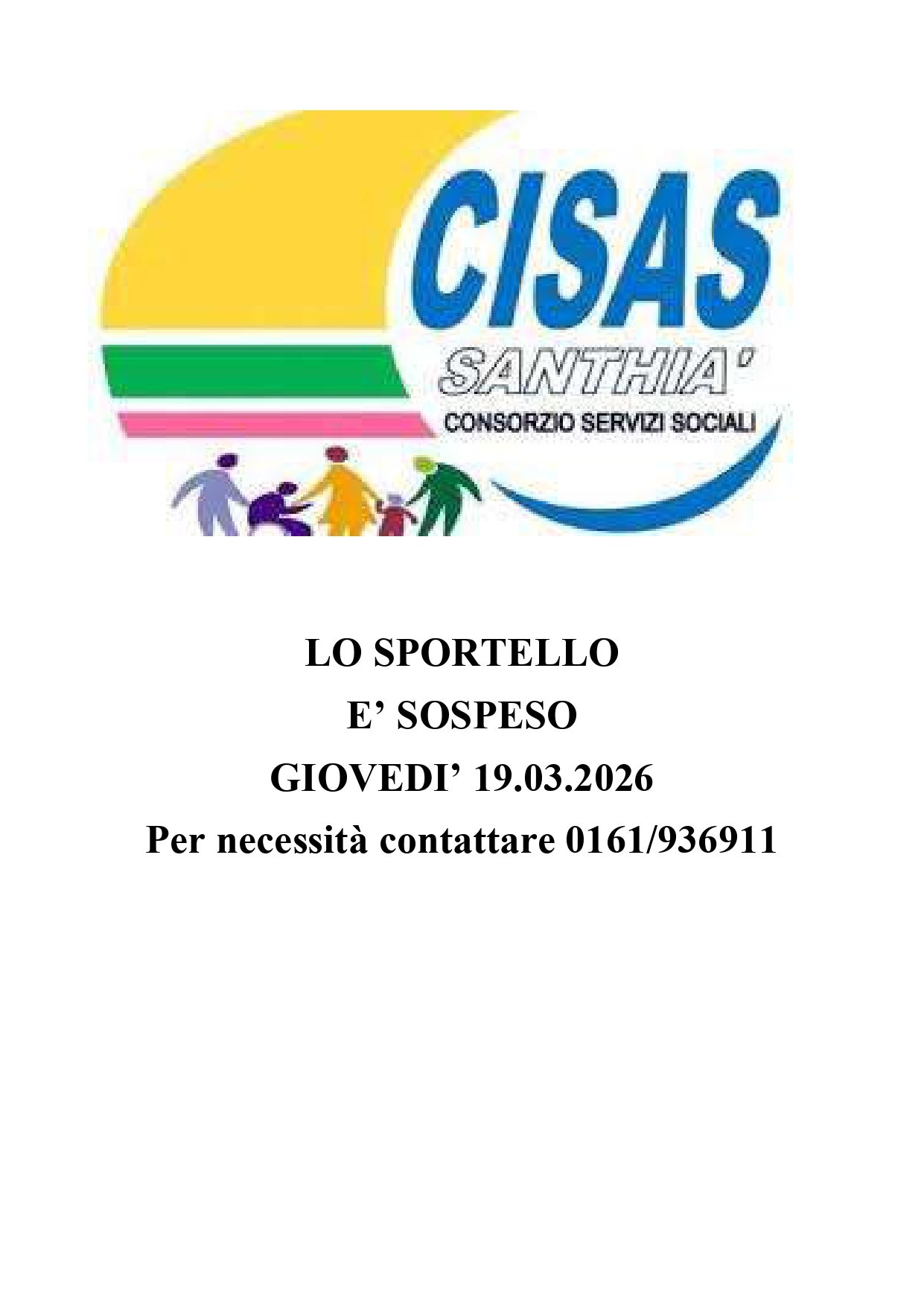 Sospensione sportello assistente sociale