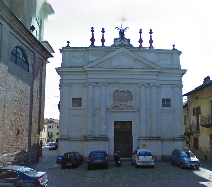 E’ situata in piazza Fratelli Garrone ed è separata dalla Chiesa Parrocchiale da uno stretto passaggio. Fu eretta nelle seconda metà del 1500. La pianta è a croce greca, con tre navate, al centro vi è una piccola cupola che si regge con l’aiuto di vele dipinte a figure del Vecchio Testamento. Sull’ingresso, all’interno, vi è una balconata in legno in cui aveva sede la cantoria. E’ ora una chiesa sconsacrata adibita ad Auditorium.