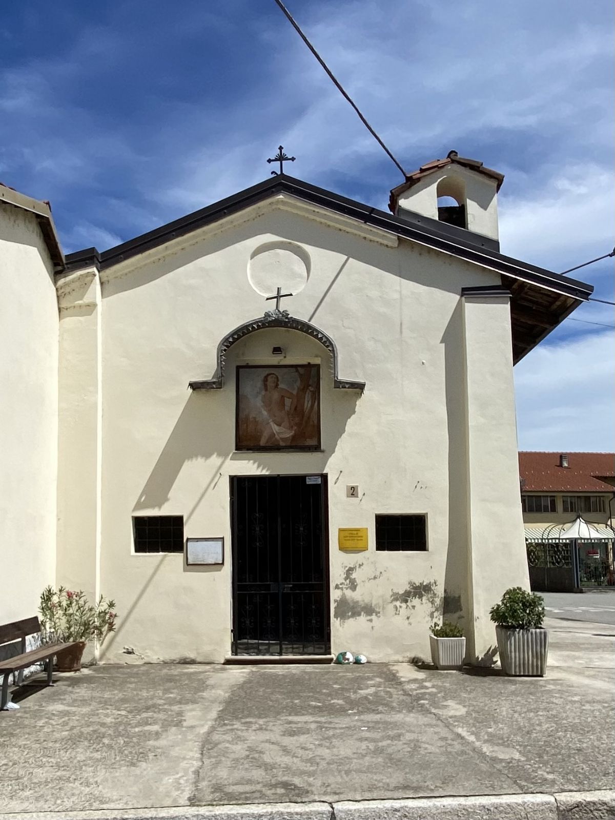 Attualmente si presenta scarna e lineare, a pianta quasi quadrata, con abside semicircolare, ossatura a capanna con copertura in coppi, chiusa da contrafforti aggettanti che si saldano alla piccola cornice di coronamento e a più profilature. Sulla facciata un piccolo affresco raffigurante il martirio di San Sebastiano è ascrivibile alla pittura devozionale locale del 1900. Il campanile non esiste e la campana, emblema locale più volte trasportata sul carroccio, trova destinazione in un severo elemento sormontante il tetto, alleggerito da una apertura.