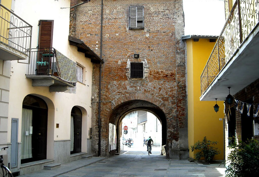 Questa ha subito nei secoli diversi danni, ricostruzioni, trasformazioni d’uso. Una data in particolare, “1388 die primo septembris”, riportata su tre formelle in cotto, incastonate sull’apertura carraia al di sotto della battuta del ponte levatoio, per molti anni fu ritenuta la data di edificazione della porta; in realtà è la data di parziale ricostruzione della stessa dopo la cruenta battaglia in campo aperto, nella campagna di Livorno verso il canale d’Ivrea, del luglio 1388 che vide scontrarsi, nel corso della guerra del Tuchinaggio, gli eserciti di Amedeo VII, il Conte Rosso, e di Facino Cane per il marchese Teodoro II: da entrambe le parti furono rotte molte lance e molti uomini d’armi vuotarono gli arcioni come ebbe a narrare un cronista sabaudo, e Ottone di Grandson, comandante in capo delle forze avversarie, venne addirittura fatto prigioniero; con l’arrivo dei rinforzi savoiardi Facino Cane fu però costretto non senza difendersi a ritirarsi nel borgo di Livorno lasciando via libera agli eserciti del conte diretti verso Verrua.