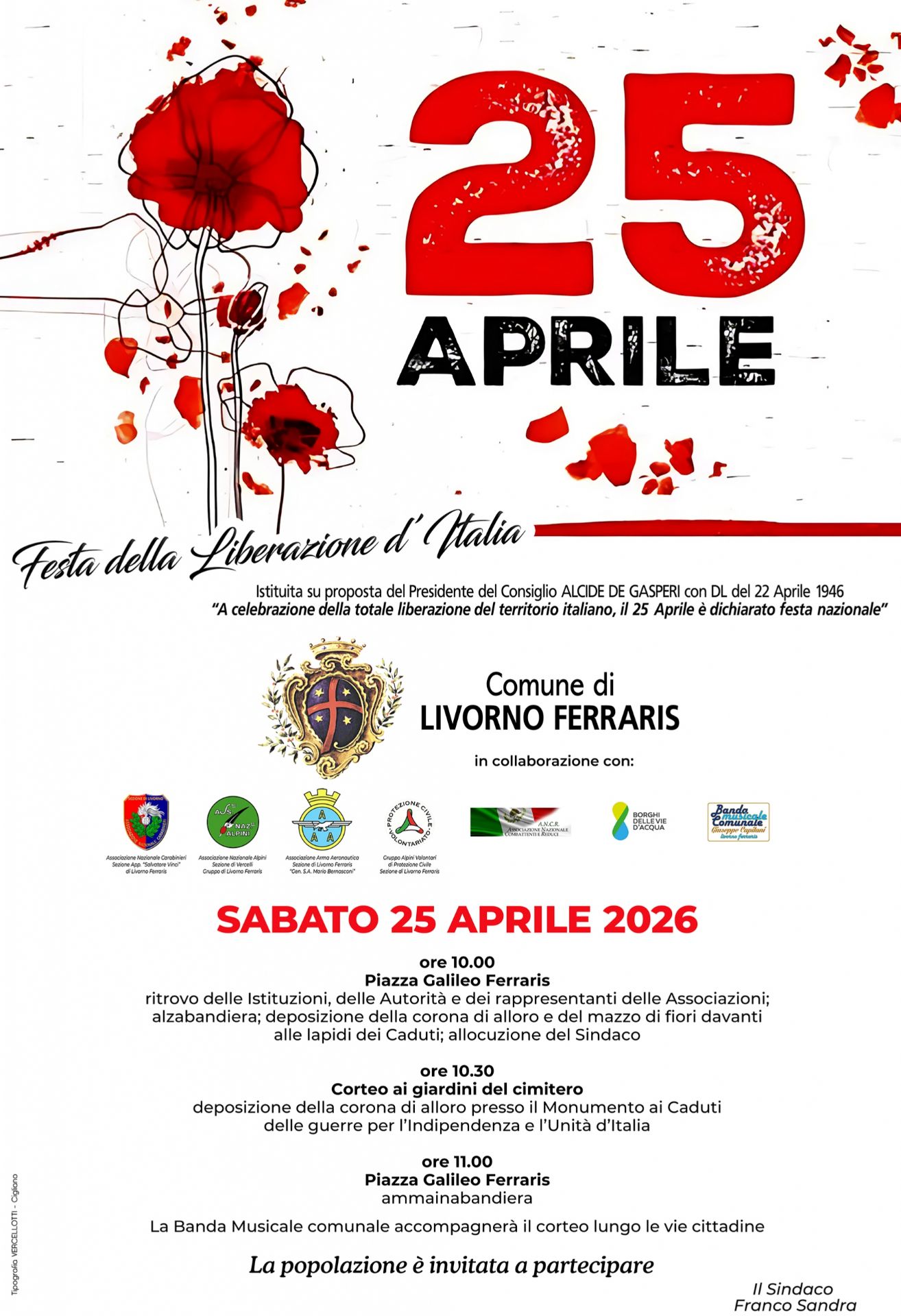 25 aprile - Festa della Liberazione, è una festa nazionale della Repubblica Italiana, che si celebra ogni 25 aprile per commemorare la liberazione d'Italia dall'occupazione nazista e dal fascismo, a coronamento della resistenza italiana al nazifascismo.