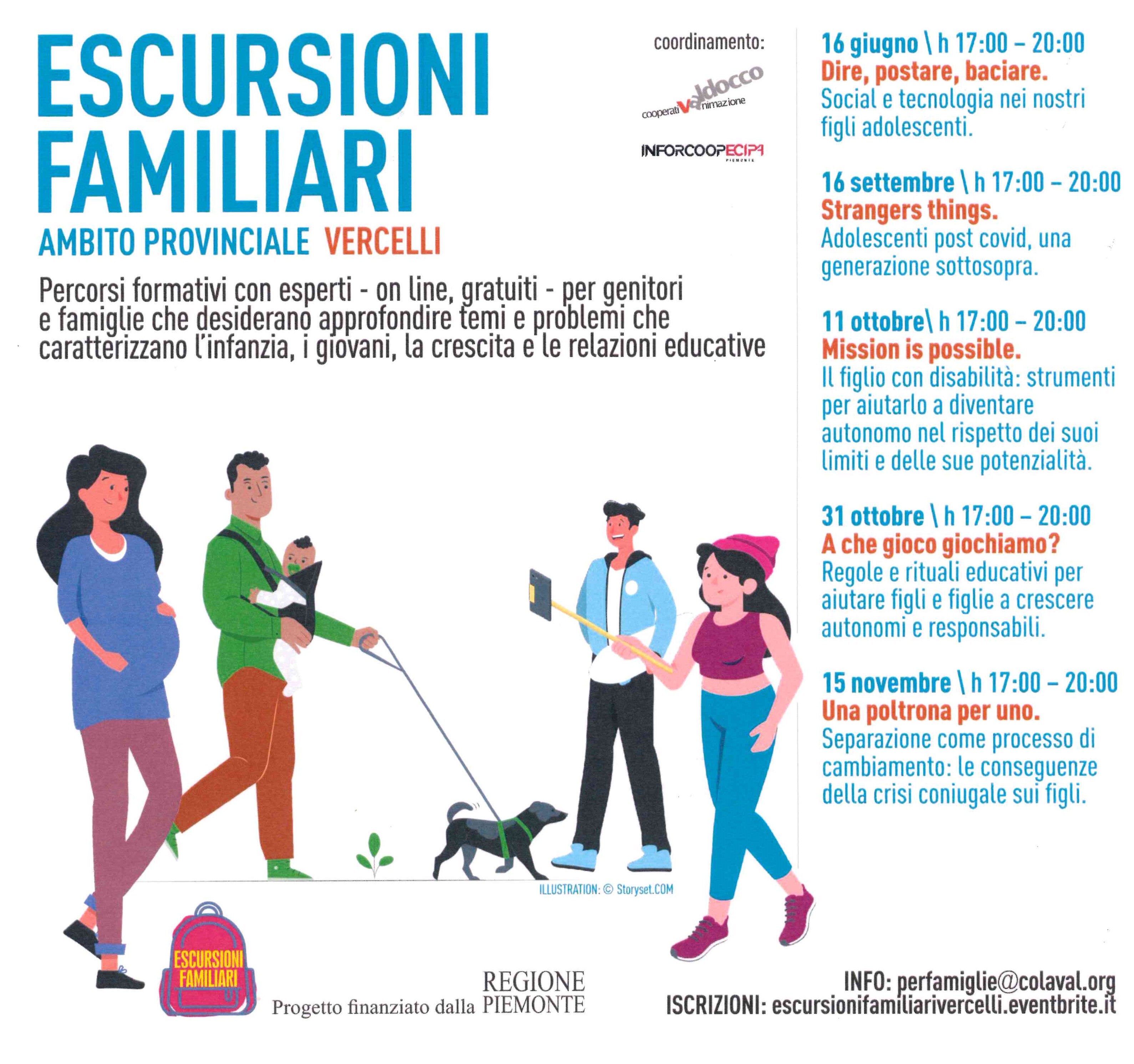SONO PARTITI A GIUGNO GLI INCONTRI FORMATIVI ONLINE DI ESCURSIONI FAMILIARI, IL PROGETTO FINANZIATO DALLA REGIONE PIEMONTE PER GENITORI E FAMIGLIE CHE DESIDERANO APPROFONDIRE TEMI INERENTI L'INFANZIA, I GIOVANI, LA CRESCITA E LE RELAZIONI EDUCATIVE.