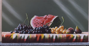 Il bruco, il buco e l'ammaccatura sulla frutta rendono quelle artificiose nature morte credibili all'occhio dell'uomo. Il silenzio e la meraviglia fanno di queste opere una finestra verso un mondo incantato tra verdi prati e foglie filiformi non mi stupirei di incontrare un gnomo.